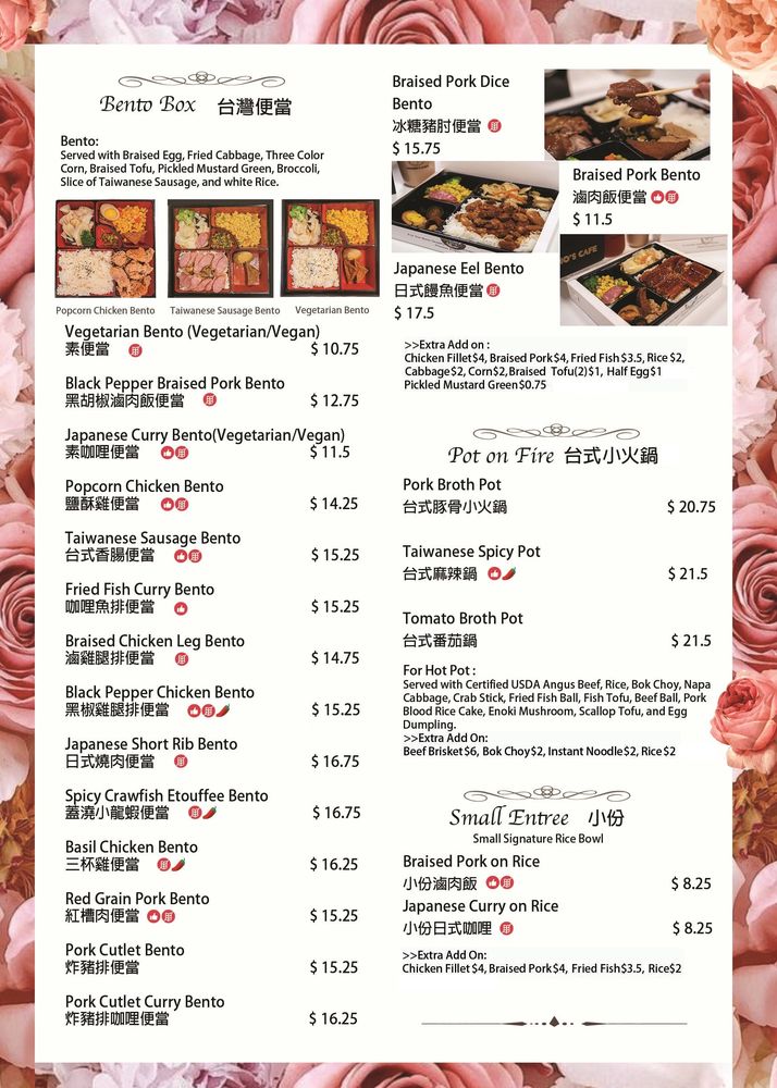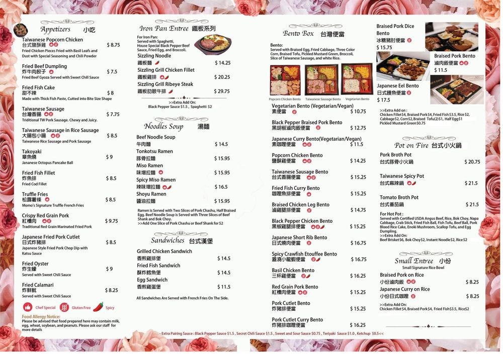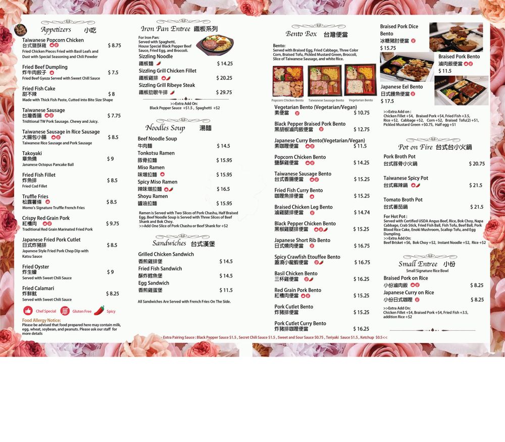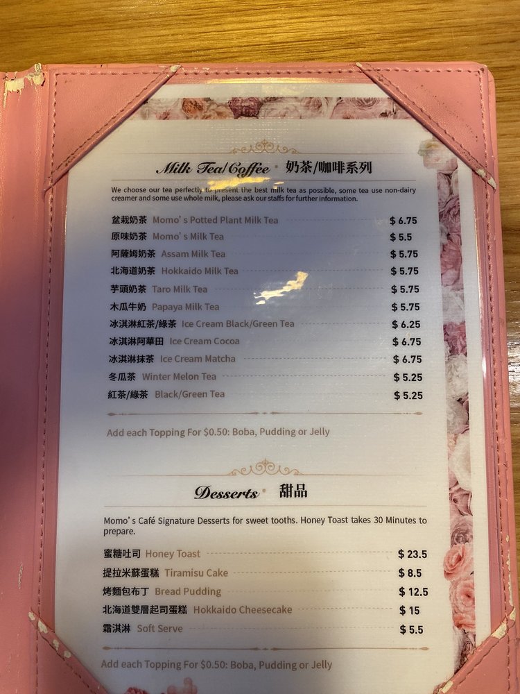Momo's Cafe, a Taiwanese-Asian Fusion establishment in Washington, DC, offers a diverse menu with popular dishes like Taiwanese Popcorn Chicken and Fried Pork Chop Bento. Customers rave about the flavorful bento boxes and crispy chicken, noting the generous portions and authentic flavors. The cafe also serves unique beverages like Potted Plant Milk Tea and refreshing shaved snow ice. While some reviewers mention occasional service issues, the overall consensus is positive, highlighting the delicious food and cozy atmosphere. If you're looking for a hidden gem serving up comfort food with a Taiwanese twist, Momo's Cafe is worth a visit.