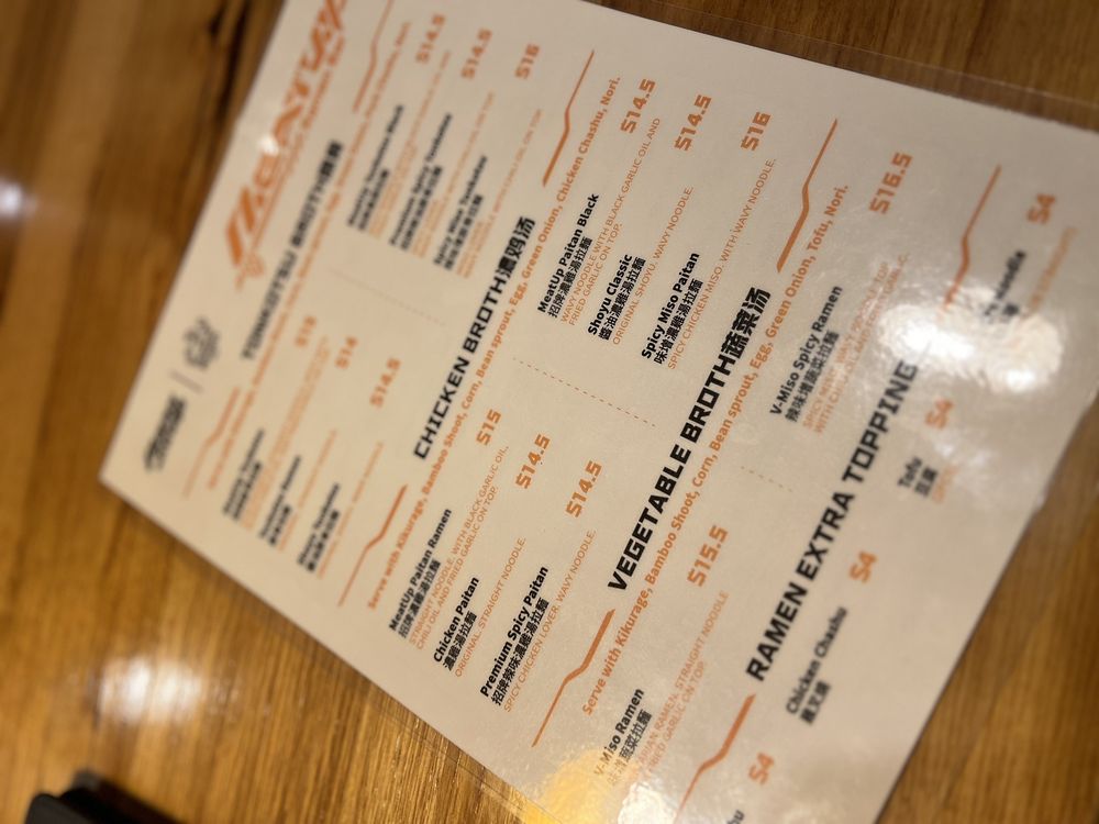 Spicy Chicken Lover. Wavy Noodle. Serve with Kikurage, Bamboo Shoot, Corn, bean sprout, egg, Green Onion, Chicken Chashu, Nori.
